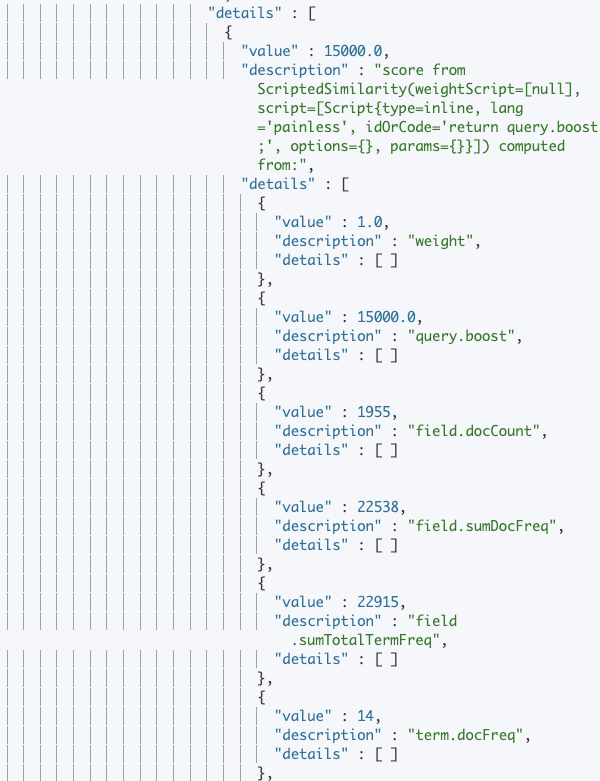 위의 script에서 query.boost만 사용하겠다고 했더니 아래 docCount, sumDocFreq 등등을 가지고 연산하지 않고 15000 값만 반환되었다